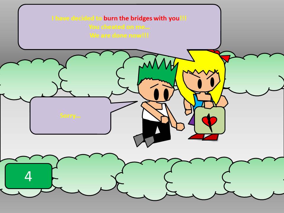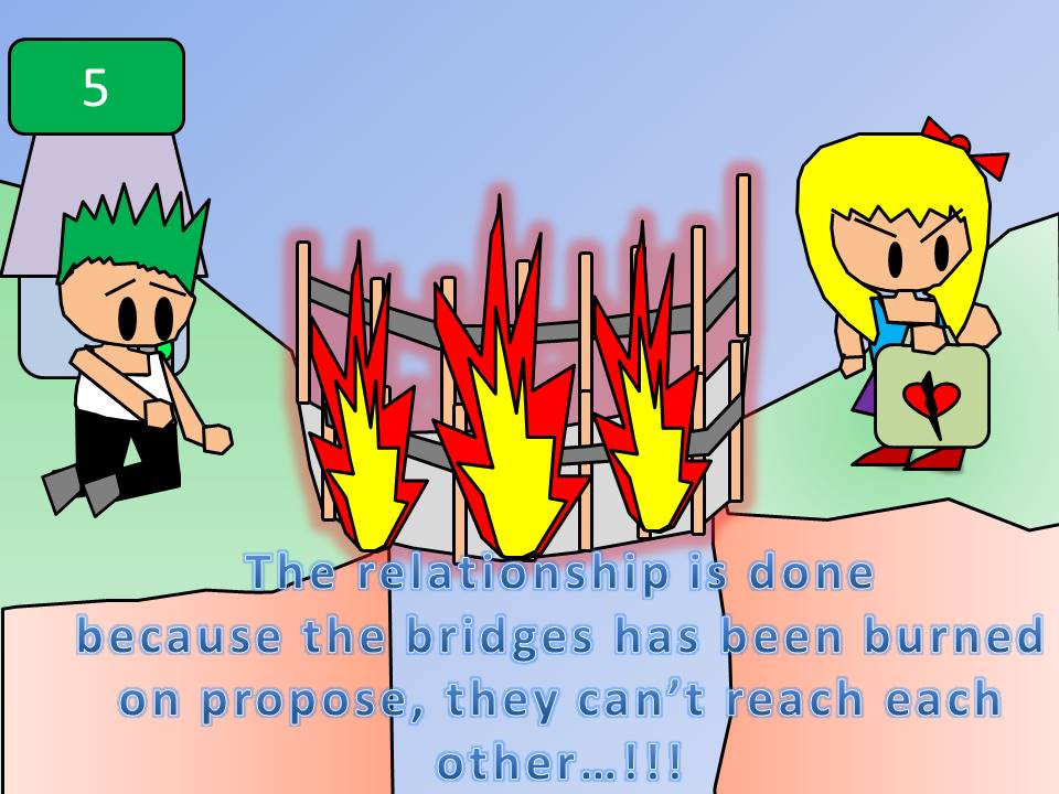 3. Ken does not want to burn the bridges to Jess even though they just broke up with each other. He thinks they will get back together in near future