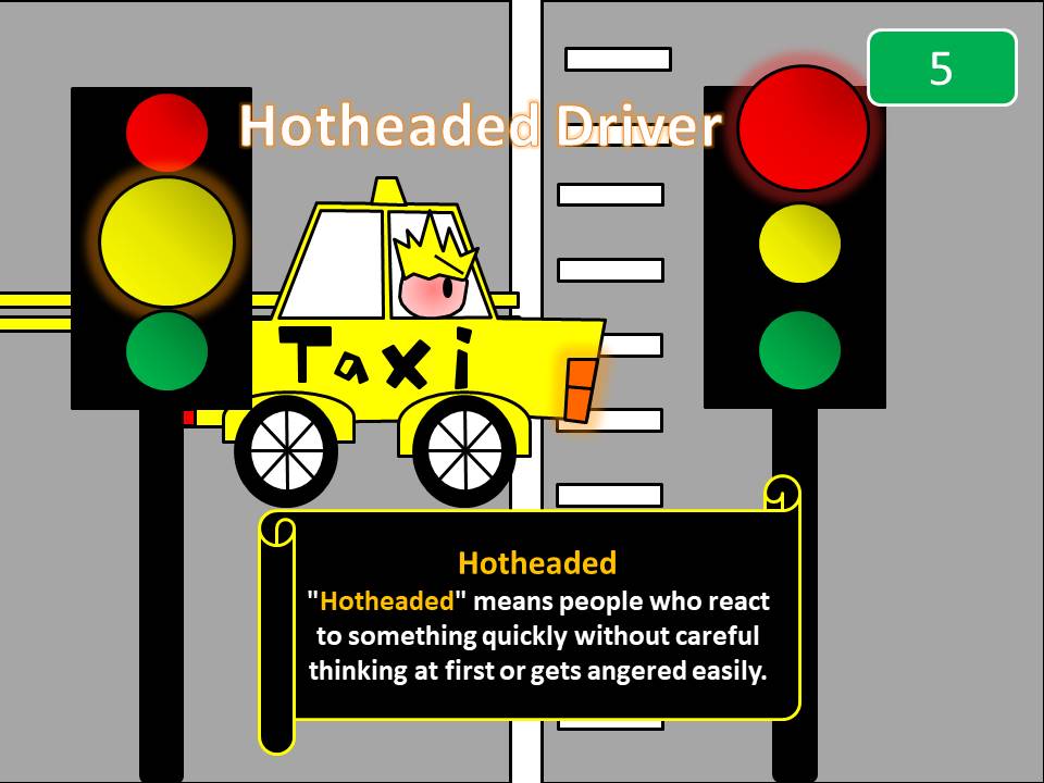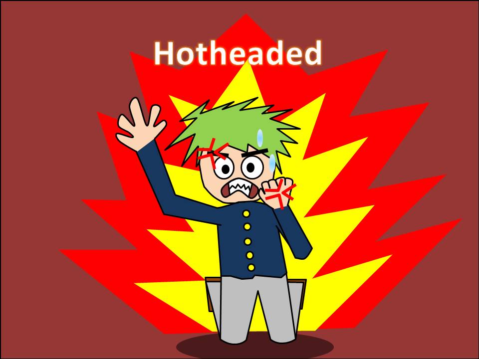 Before we look into "hotheaded," we need the image to rise first. "Hotheaded" means people’s head gets heated by their emotions easily. Therefore, we use "hotheaded" to describe a person who gets angered or excited easily. picture.1
