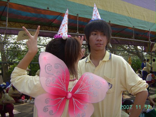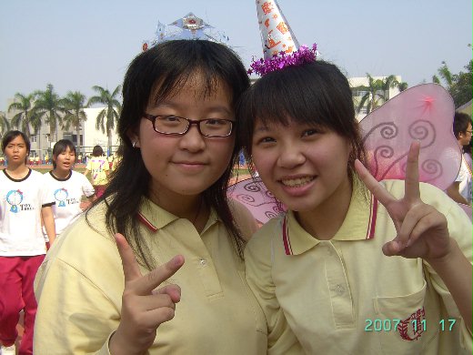 由小花和文伶的主意,拼湊出美麗的303美麗神話的華麗隊伍。昨天下午她們兩人花了一個下午忙著準備道具的材料,真是辛苦她們了!當時的其他人就在苗中小小的內操場裡面努力的練習專屬於我們303美麗神話的隊呼和班歌,當時掀起一陣不小的風潮呢!