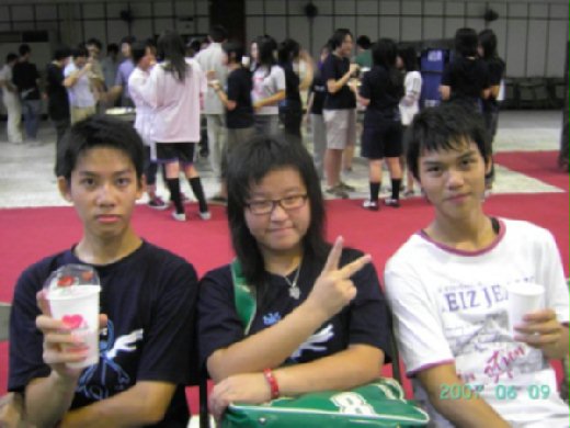 不過,不知怎麼搞的,三個個性天南地北的孩子,聚在了一起。當即時通上的視窗一打開,話匣子彷彿就停不了的東拉西扯的說了一大堆!不過,當一中ECC賦予我這個困難的任務時,我又哽住了!怎麼辦?要打電話給你們?從來沒有聽過你們的聲音(也許曾經在一中的成發上聽過),也不知道人長的是圓是扁,打電話?邀你們出去參加活動?我不過是一個小小的苗中生,我哪敢打啊!當我打給舒服你沒接時,抖著手按下了殺千刀小綜的電話。耳邊傳來「嘟!嘟!」的鈴聲,整個心臟是吊在阿里山神木上的。「喂?」低沉的嗓音,有種大哥的氣息。當場想把手機丟到,告訴他我打錯了,叫他不要把我拖到後山去埋!呵,當時我真的是很緊張的,同學還笑我說沒看過我打電話這麼緊張的。