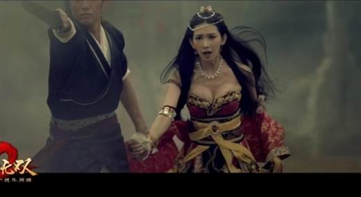 林志玲一身古裝造型,谷胸展露4寸事業線。在她的歌聲襯托下,宣傳片看到她七情上面,與男主角非常親熱,還相視情深對望。當中營造生離死別情節,她淚眼相望,還含淚抱著男方,畫面凄美。之後面對迎面而來的大批敵人,男主角牽著她揮刀迎戰,希望衝出重圍。網民稱讚她太美了,是女神。 新浪娛樂