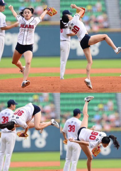 邀請身材火辣的女星開球對韓國職棒來說,已經不足為奇!繼7月初請體操選手申秀智大迴旋開球後,斗山熊隊17日再出新招,請來藝人Taemi,學生時代專攻跆拳道的她,上演「360度空翻開球」才讓所有人傻眼。