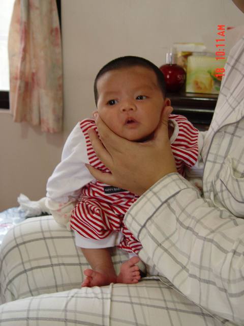 他們說新生的嬰兒是大近視,偶而會發笑,其實那只是顏面神經的自然抽搐。