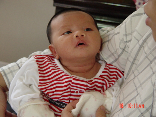 還記得那是從日本回來以後隔了一個月,有一天媽咪突然帶著神秘兮兮的笑意從廁所裡走了出來,貼著爸比的耳朵說:「你要作爸爸了。」起先爸比沒有聽清楚,媽咪又說了一遍,爸比這才驚覺「我要做爸爸了!」