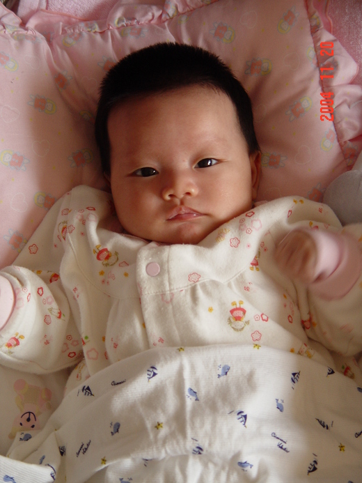 結婚之前,爸比就不斷威脅媽咪,說結婚後一定要生女生,否則會地位不保。很奇怪,對於我的威脅大家都不信,媽咪老是回給爸比一個白眼睛。懷孕的前三個月裡,寶貝的性別還無法判定,爸比卻在心裡設想最壞的情形「其實男的也不錯啦。」後來爸比還跑去找媽咪商量:「萬一是男孩,就取名叫招妹好不好?」結果當然又是一頓白眼。