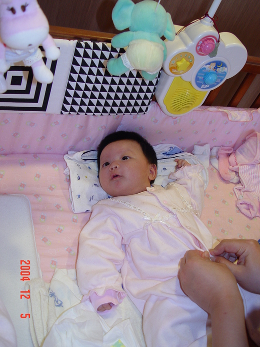 但媽咪是個厲害的角色,她有著逗弄小孩的天份,隨便眨個眼睛、裝個表情,就可以逗得寶貝喜孜孜的回應;而爸爸我對逗小孩這檔事天生不行,弄來弄去就只會對著寶貝傻笑,重複唱一些五音不全的搖籃曲。好在我親愛的寶貝還算公平,躺在懷裡不哭不鬧,只是偶而會睜著眼睛望向媽咪,一副求救的表情。