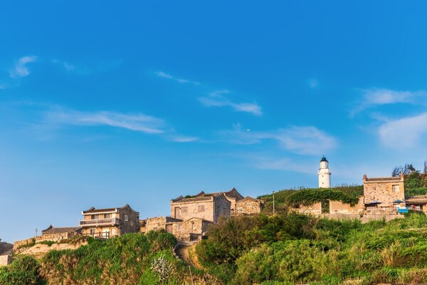 曾經是東莒最繁華的村落而今只剩十戶人家與海相伴,往日榮景雖不再猶有石屋及塔相隨。這東莒燈塔雖因湊巧整修無法近看,然二落水、亂石砌形成的寧靜氛圍別有一番風味。