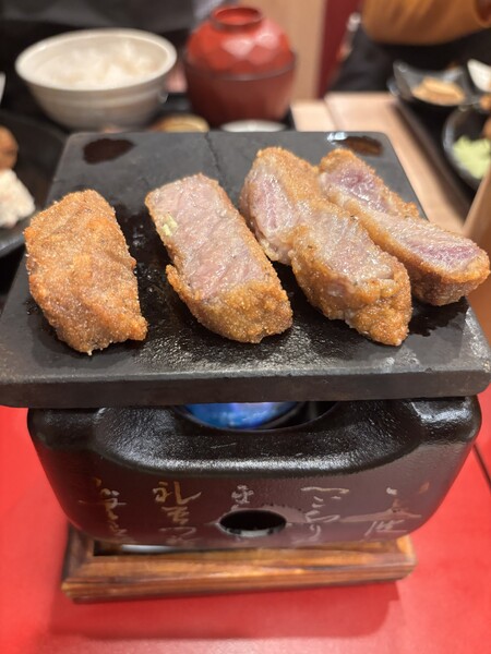 這家炸牛排採大中小份量計價,外表炸得香酥有嚼勁,但食前尚須於特製鐵盤上煎熟,店家特意囑咐墨等人煎熟,果然煎至全熟才好吃,顛覆牛排三分、五分、七分熟的傳統概念。墨尋思牛排肉內應該是處理過,有可能抹上特製酥油煎熟才好吃。