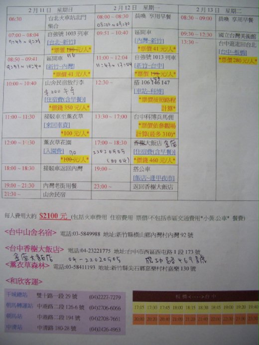 第一次自己查火車時刻表 找旅館 問價錢