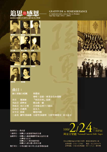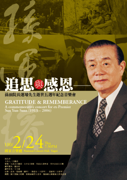 追思與感恩──孫前院長運璿先生逝世五週年紀念音樂會
