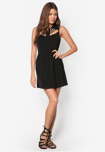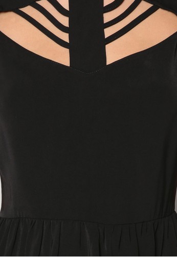 ZALORA 的Love 鏤空圓領傘擺洋裝,圓領上身配有胸肩處鏤空細節,是性感修身的時尚洋裝設計。 - 聚酯纖維 - 圓領 - 無袖 - 拉鍊設計 - 合身及寬裙擺設計 - 無內襯