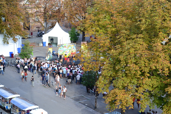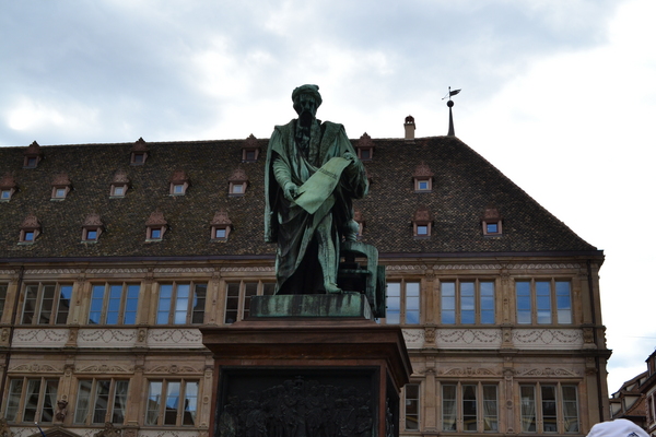 古登堡廣場(La Place Gutenberg)有個紀念古登堡的銅像,他原是一個窮途潦倒的流亡貴族,在此發明印刷術,於1445年印出第一本聖經。這個廣場有個旋轉木馬,法國幾乎每個都市的主要廣場都會有它的蹤跡,讓大家回憶童年的情趣。廣場週邊的房屋建築古色古香,非常有特色。