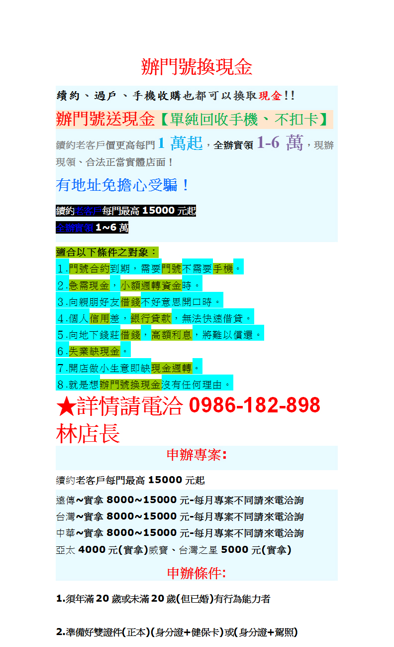 - 缺錢辦門號換現金 0986182898林店長 line id:0986182898 急需現金 爆乳女勾小開 囚虐7小時