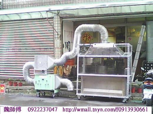 符合現今社會環保意識的提升,小吃攤販需做好油煙不飄出,小吃攤販收攤時可將設備推回該放的地點簡單、方便、好收納,活動式廚房設備的用途:當油煙經由煙罩在經由風車後進入油煙處理機將油煙完全除去在經由出口排出。