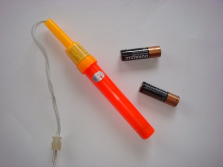 - 再將頭部頂端切開,將手提燈座的燈泡與線路置入,並且利用透明膠帶來調整線路高度後,將其切口封閉