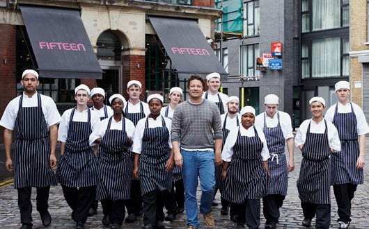 2002年他在英國電視台的真人情境秀中,將15位失業的青少年訓練成合格廚師,更在倫敦成立15餐廳(Fifteen Restaurant),延續這項信念。