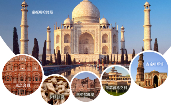 在印度,其首都德里與周圍的阿格拉與捷布被稱為金三角區域。而其中,便有你我在地理課本與國家地理頻道常聽到的泰姬瑪哈陵。泰姬瑪哈陵位於印度的阿格拉內,此陵墓是以白色大理石建造的陵墓,總共有16座花園及53個噴水池是沙賈汗國王為其皇后慕塔芝瑪哈所建造。
