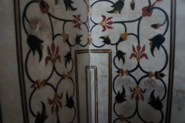 (圖四)泰姬瑪哈陵內由五彩寶石鑲嵌而成的藤蔓花卉和花葉浮雕