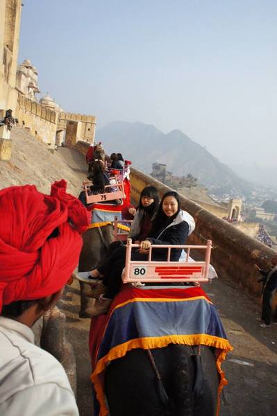 在號稱「民族博物館」的印度中,琥珀堡融合印度教和回教的文化,更是頗具特色的偉大建築之一。有別於泰姬瑪哈陵,依著山勢興建的琥珀堡地勢險要,且由一條護城河周圍環繞著蜿蜒的高牆,整座城給人居高臨下的感覺,光是上城堡,就得要坐大象長達十分鐘。在上琥珀堡的過程中,大象雖然會自然而然的就排泄,但是,後面卻有人馬上清理,顛覆了印度人不愛乾淨的印象。