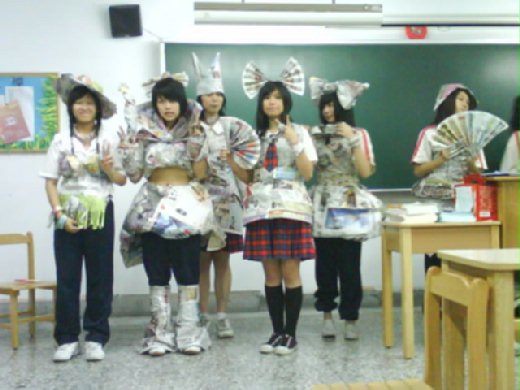 材料就是利用報紙做出不同的衣服和物品,