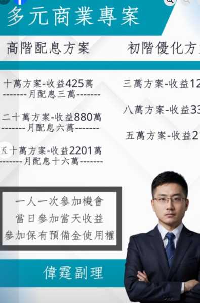 用後期投資者的資金支付前期投資者的收益,營造賺錢假象,最終崩盤跑路。常見話術:「拉人頭分紅」、「層級獎金」、「限量會員」。 -