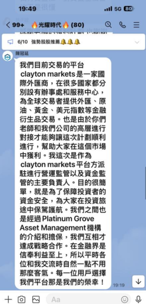 【新聞資訊】claytonmarkets詐騙嗎?光耀時代詐騙群、陳冠延詐騙、靈蛇復甦增資計劃詐騙、叫你買黃金價差合約、社群水軍分享獲利全是假、詐騙吸金的戲碼仍持續上演中、切勿聽信網友投資