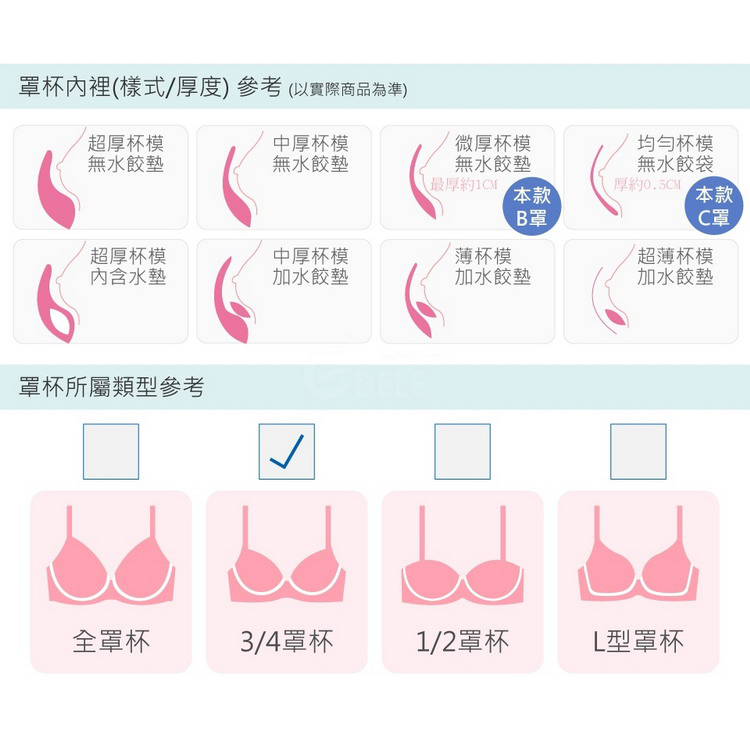立體3/4杯模,讓你胸部更加渾圓豐滿,展現誘人好身材