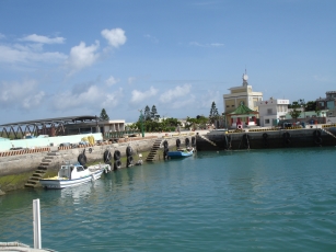 在微風中感到有些寒冷,這真是神奇,按理說,此刻的我們應該在前往七美的船上,容易暈船的我可能面色如土,可是我卻微笑著,站在被譽為海內明珠的大倉島上,被朋友稱為「港」的長方形超大水池,裡面停泊幾艘船,亮白的船棲身於垂直切割的水泥邊,隨水波緩緩搖晃。