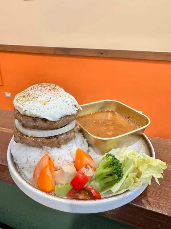 同事們則分別點了塔香豬肉漢堡排飯和夏威夷漢堡排飯,塔香豬肉漢堡排飯有著濃鬱的塔香風味,肉質Q彈多汁,夏威夷漢堡排飯的醬汁超級澎湃,份量十足。