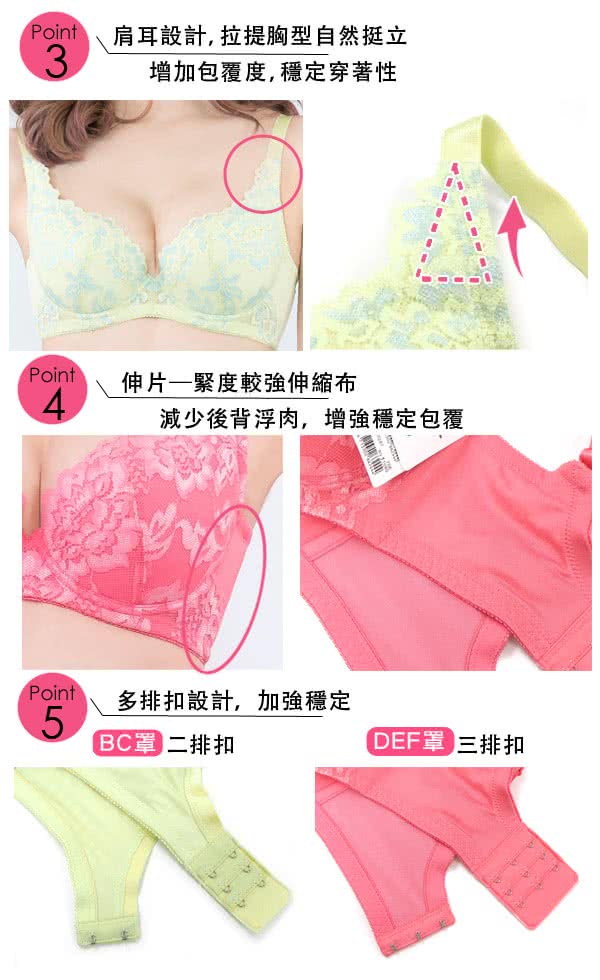 1. 經典手捧式罩杯剪裁,拉提胸型自然挺立,無懈可擊的360度呈現完美曲線。
