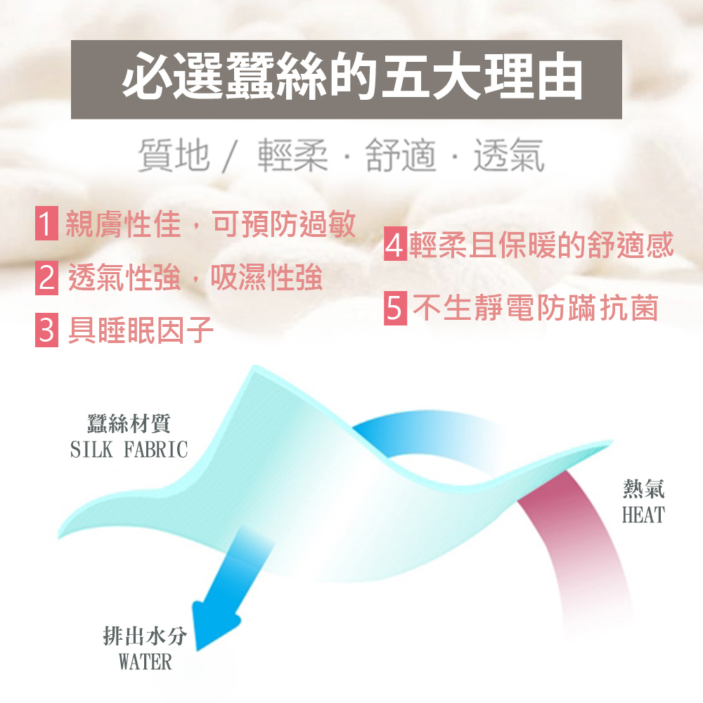 內層~蠶絲棉布 中層~3D多孔棉 外層~蜂巢透氣網布
