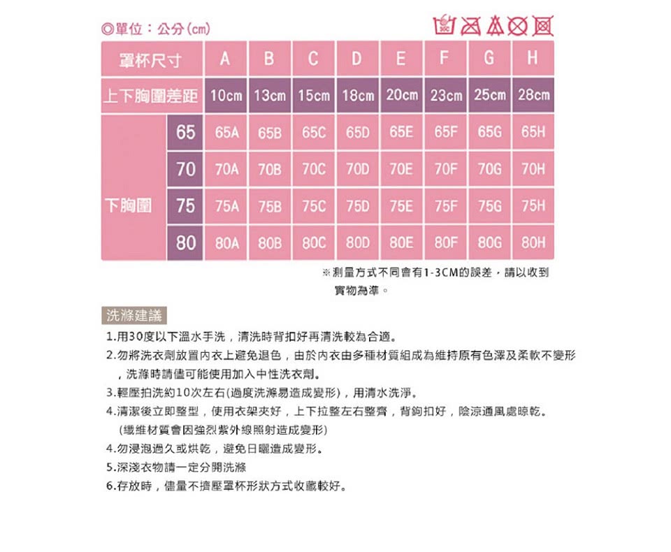 ◆內衣尺寸:此為 微調整型內衣,建議胸下圍拿比平常大一號,例如平常穿36C ,這款請拿38C