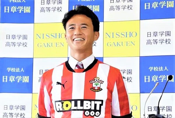 在全日高校總決賽前半年,去年6月19日,英超南安普頓俱樂部官宣,日本U19國腳高岡伶颯將加盟該俱樂部,但要等到2025年3月他年滿18歲才能正式簽下職業合約,但球團已派專人到日章學園校園親自為他穿上南安普頓戰袍。事前,誰能想到一名業餘高中生,能被當前正在征戰英超的球隊預定,然而這事正降臨在高岡伶颯身上。