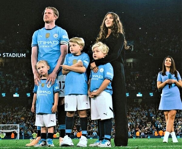 德布勞內與妻小出席在曼城主場告別賽。(取自藍月亮社媒)
