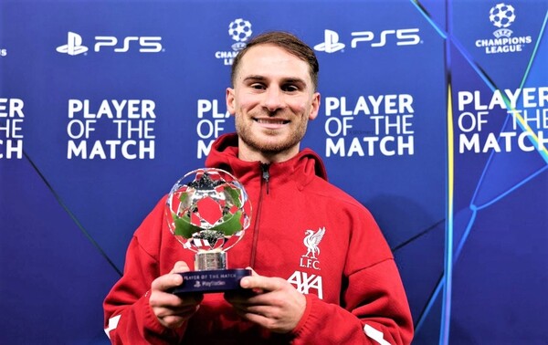 利物浦在歐冠靠麥卡利斯特進球而擊敗皇馬,賽後當選歐冠官方全場最佳球員。(取自UEFA文宣)