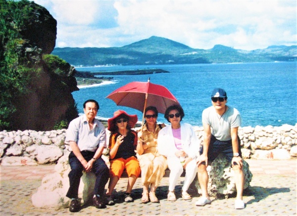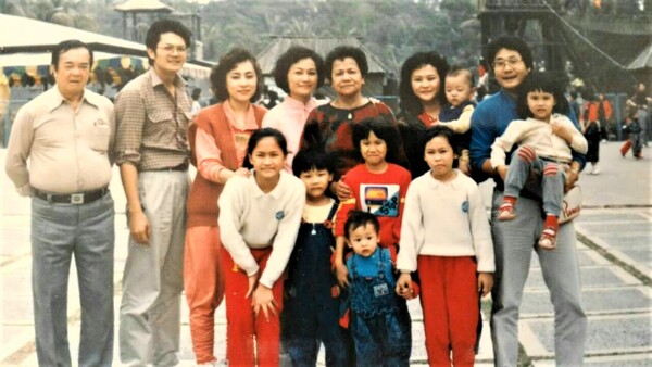 1988年春節回娘家,蔡家姊弟與老人家走春遊照。