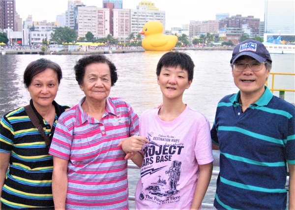 2013年10月15日,「黃色小鴨」游入高雄愛河真愛碼頭期間,與妻小三人帶著老岳母前往趕熱鬧,並留下紀念照。
