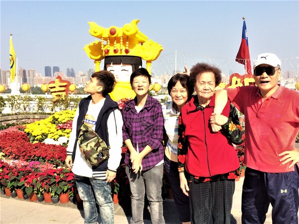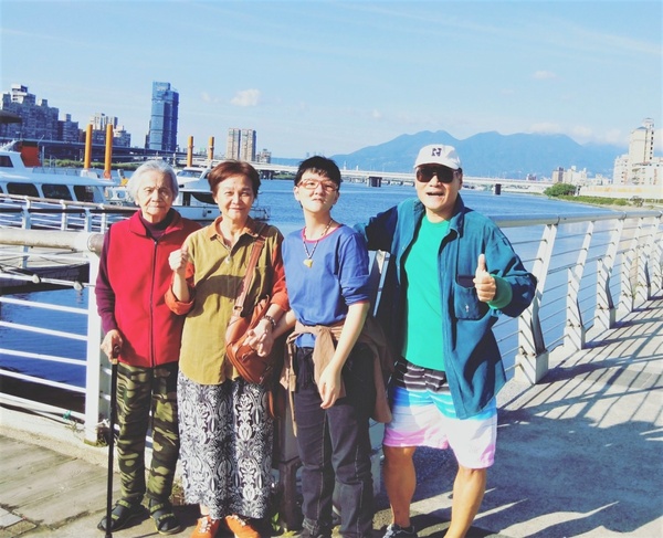 2020年元月與妻小陪老岳母在大稻埕碼頭合影。