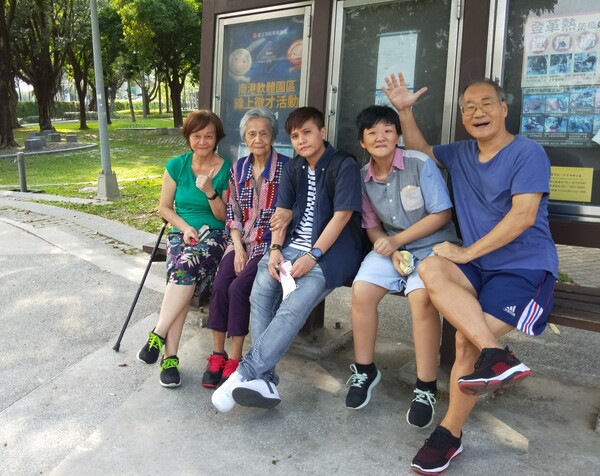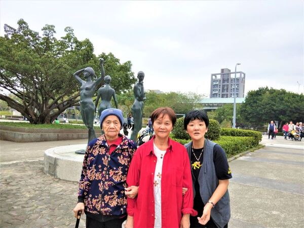 2020年八月搬回東湖前,我們住在長安雅仕陽光屋,常陪同老媽媽在華山公園合影。