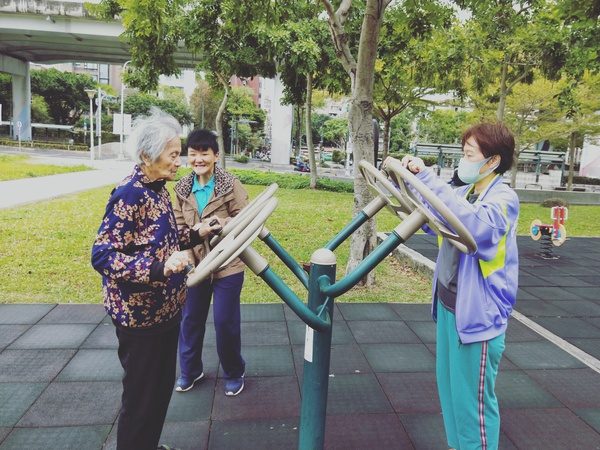 2020年元月冬天陪老媽媽在華山健身活動。