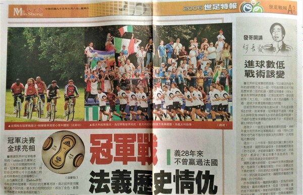 民生報是我這一生唯一的事業單位,當退休後迎來的第一個世界盃即2006年大賽,接獲聯合報系來電告知,說是老闆娘王效蘭指示要邀發哥每天為世足賽寫專欄,於是那一個月是我離開後唯一的一次為老東家民生報寫世足「發哥開講」(見上圖),但真沒想到民生報竟會在2006年年底收攤了!