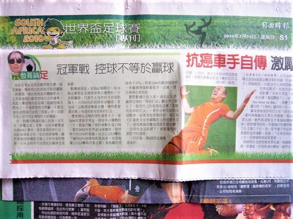 民生報走入了歷史,當2010年世界盃來臨,發哥接獲自由時報體育主管王元鴻邀約,比賽期間每天寫「發哥論足」自由專欄(見上圖),隨後的2014年世足賽,在平面媒體方面,發哥仍持續與自由時報合作;而2018年世足來臨,接受老東家聯合報系的UDN聯合網體育主管樹衡兄邀約,特聘寫了逾整月的世足賽「發哥論足」專欄。