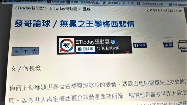 今天的平面媒體已被及時的網路媒體逐漸搶走時效,發哥的足球專欄在退休後,先後與ET網東森新聞雲以及NOW News今日新聞和UDN聯合新聞網合作過,尤其是在2014年那屆世界盃,發哥與ET網簽下長達七個月的強力出擊合作案,幾乎天天發表「發哥論球」(見下圖),感恩當時張總張璨,還有譚志東、虞煥榮、王翔的肯定與合作,隨後在2018世界盃年,持續再與ET新聞網合作出擊,並搶先早在賽前一個月即發表「世足發哥開講」。