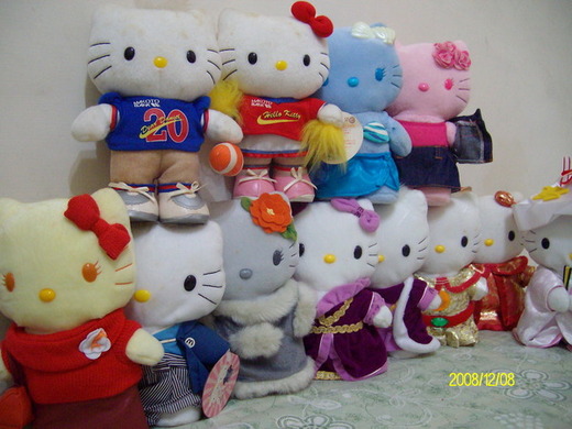 凱蒂貓系列的產品,在全世界已經風靡了好一陣子,最早麥當勞販售餐點時,就推出加購價即可享有限量造型凱蒂貓絨毛玩偶一對,記得當時還因此造成麥當勞店門口排隊風潮,但是絨毛玩具體積大易生塵蹣,我姊當初收集這一系列絨毛玩具給我外甥女,現在一對對產品用透明紙袋包著,上面佈滿了灰塵,到現在留著佔地方,丟掉又捨不得。