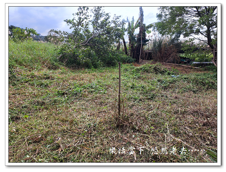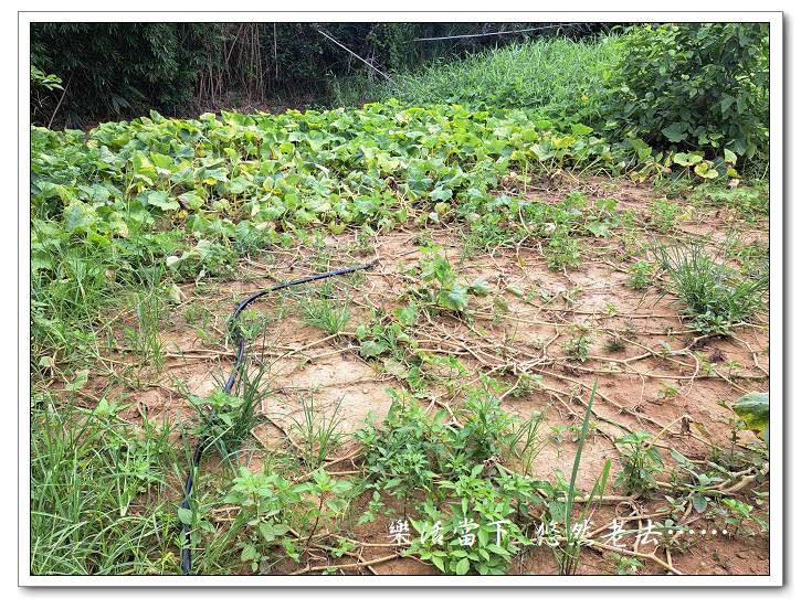 最近老是在下雨,雨後泥土溼就很難除草,所以上次除草沒能完全做完,昨天還下雨,但草若不趕快除將會愈長愈快、愈長愈大,若是南瓜藤伸展處將更難除草,所以趁著今天好天氣趕快動手再除草。今年給南瓜伸展的區域,大概算了一下約二十坪左右,但願南瓜能在這處空間長得好,能多長些南瓜。