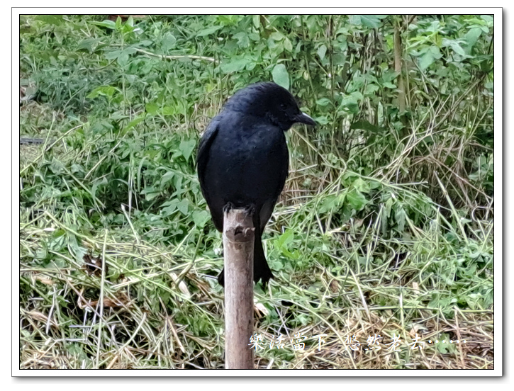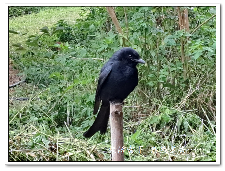 除草時幾隻大捲尾老是在身邊,有時站在高處,有時在身邊附近繞,偶爾會看到牠們啄東西吃,但無法知道究竟吃了什麼。
