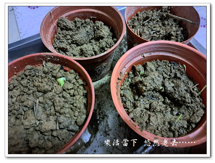 第二次育苗的其中一盆也看到即將發芽冒出,這發芽的時間未免太久了。