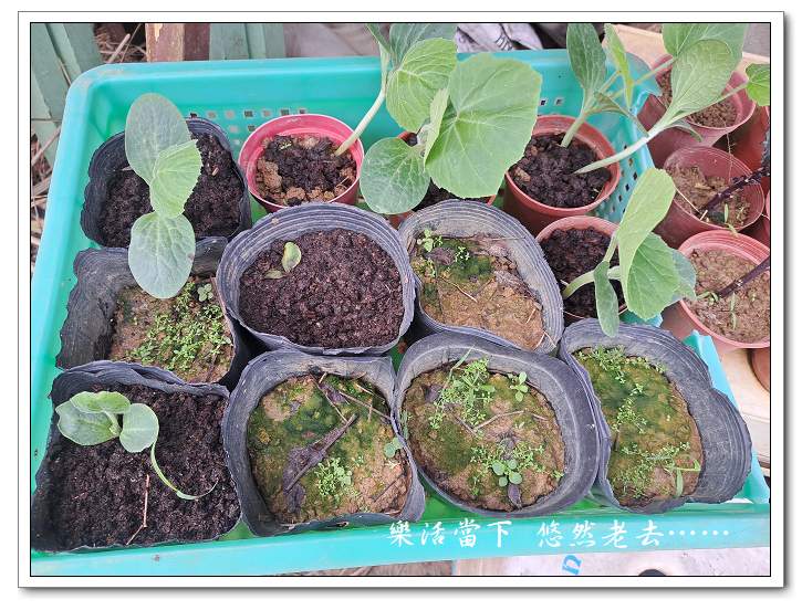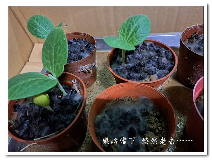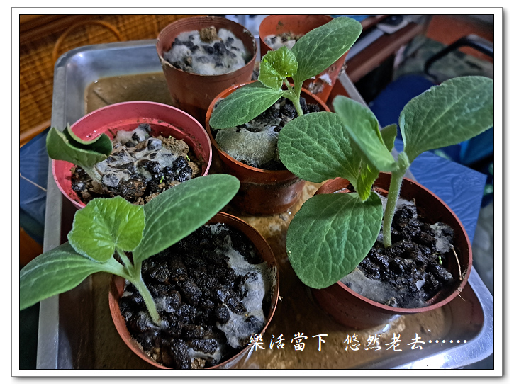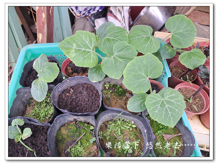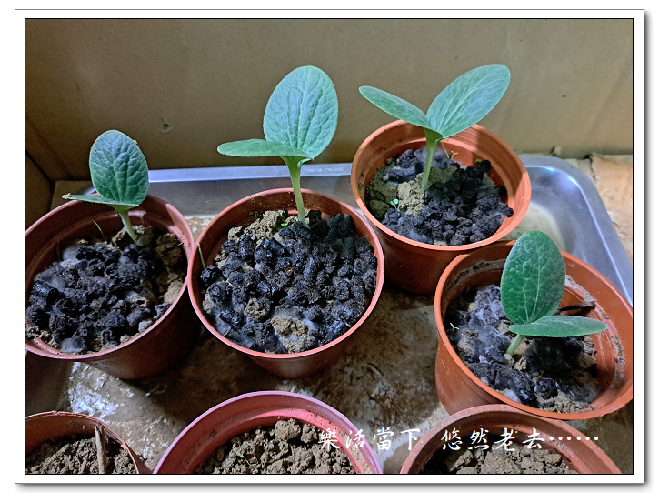 網路上看到南部有人南瓜已經快要成熟可摘了,而我的育苗都沒發芽,趕快在家裡再進行育苗了七盆,每盆都放入二顆種子。