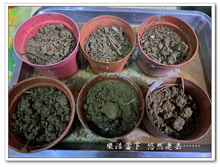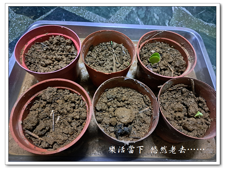 種子在溫水裡泡了一天後,其中一顆為不成熟的種子將它挑除,拿了六個小育苗盆將種子埋入,並將六盆保溫,放置於恒溫約二十度的地方。
