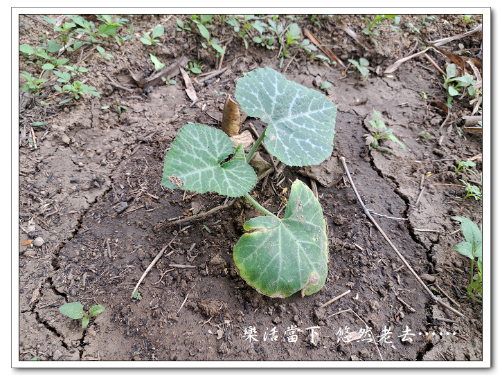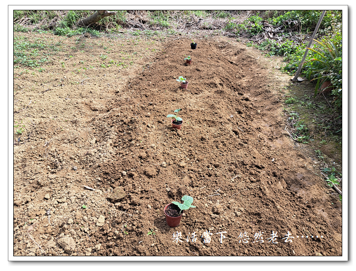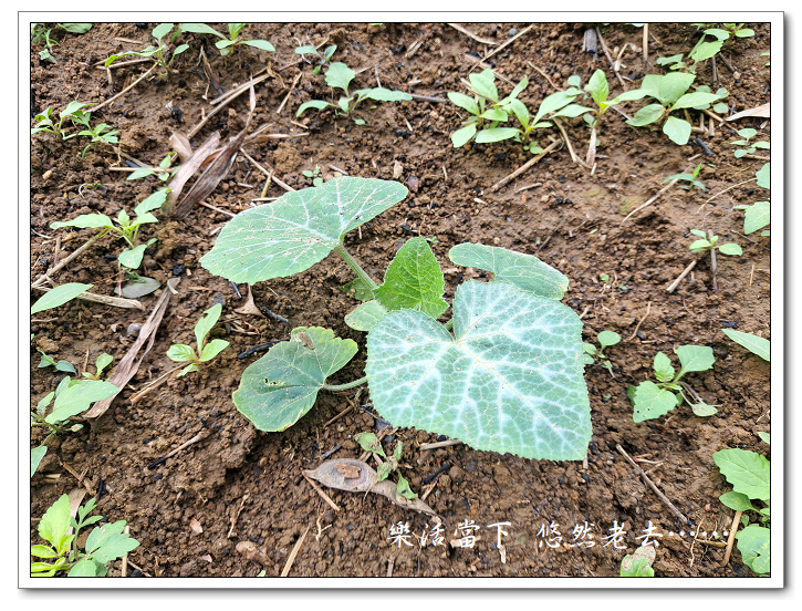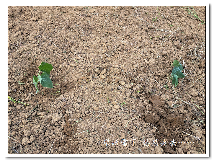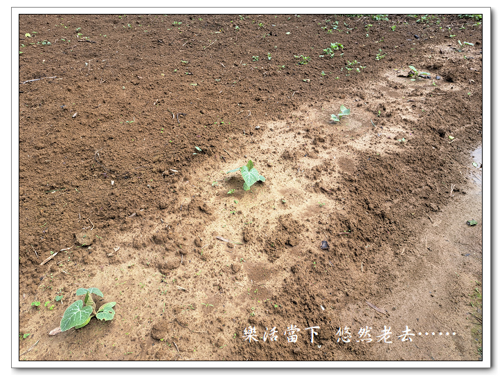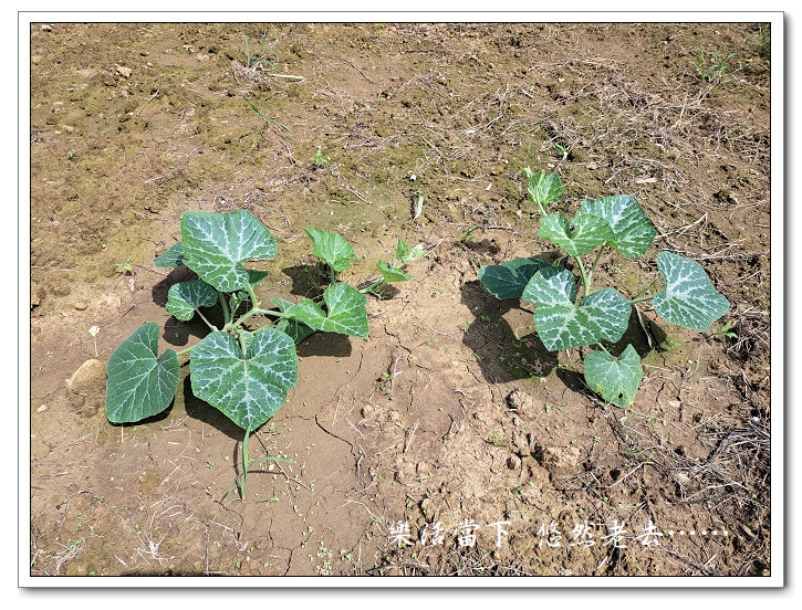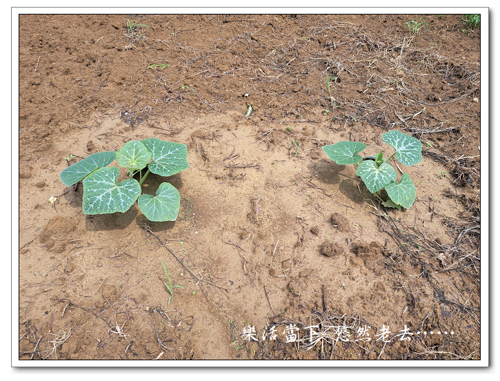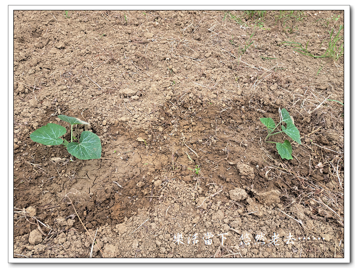 另外還有二株小苗可種,若種下後就有十株,剛好鄰居來聊天,說他今年南瓜育苗失敗,只剩二株小苗種下後被太陽曬得半死不活,我告訴他若不嫌棄南瓜苗長得不夠好就拿去種吧,就這樣二株小南瓜苗送給了他。